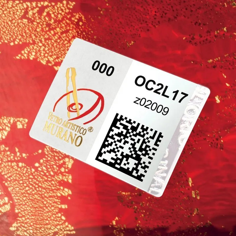 The Vetro Artistico governing body of Italy regulate and inspect all Murano glass producers and assign each supplier with a code specific to them, this code, and the products individual unique code is then printed on the holographic QR code sticker that you will receive with your order.